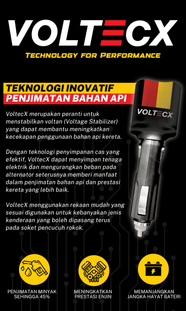 Voltecx ialah alat penstabil elektrik plug & play untuk kereta yang membantu menjimatkan minyak, meningkatkan prestasi enjin, dan memastikan sistem elektrik kenderaan lebih stabil.